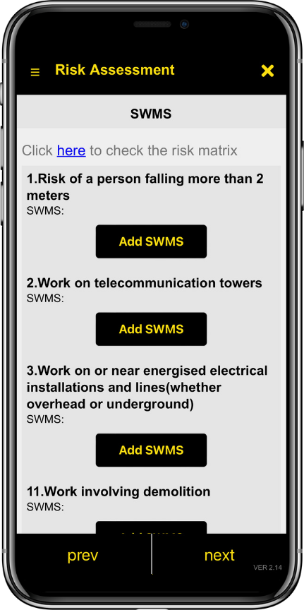- Safe Work Method Statements (SWMS)